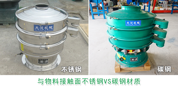不銹鋼材質具有良好的耐腐蝕性能和防不銹性,外表相對美觀且不必經過鍍色等表面處理,適合大部分篩分物料接觸面要求較高的物料。