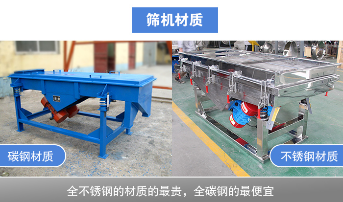 松香分級直線振動篩材質分為碳鋼與不銹鋼兩種,材質的結構形式有3種,1:全不銹鋼;2:全碳鋼;3:不銹鋼+碳鋼(物料接觸為不銹鋼材質,底座為碳鋼材質)其中全不銹鋼的材質的貴,全碳鋼的便宜,價格上會相差幾百到上千元不等。對于松香篩分衛生環境要求較高的可以使用的不銹鋼材質,對于衛生環境要求不高的可以選擇碳鋼材質。