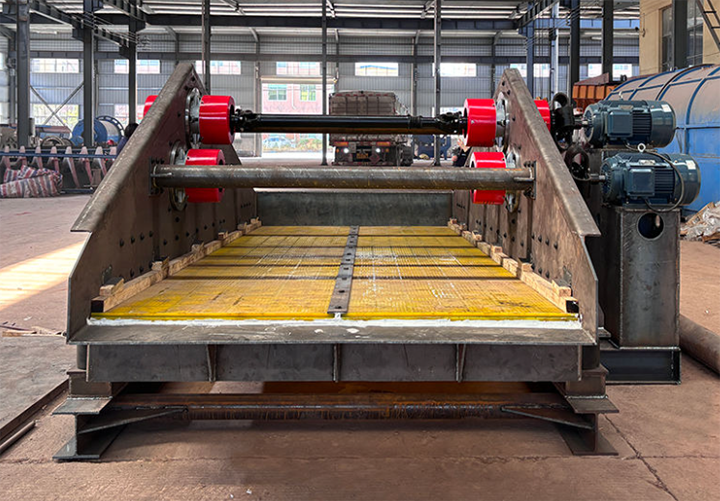 SZZ自定義中心振動(dòng)篩的篩箱由電機(jī)驅(qū)動(dòng)偏心塊旋轉(zhuǎn)產(chǎn)生振動(dòng),偏心塊的旋轉(zhuǎn)使篩箱沿著自定中心軌跡振動(dòng),即篩箱振動(dòng)方向圍繞篩箱自身的中心點(diǎn)進(jìn)行,從而使物料不斷被拋起、松散并通過篩孔完成篩分。